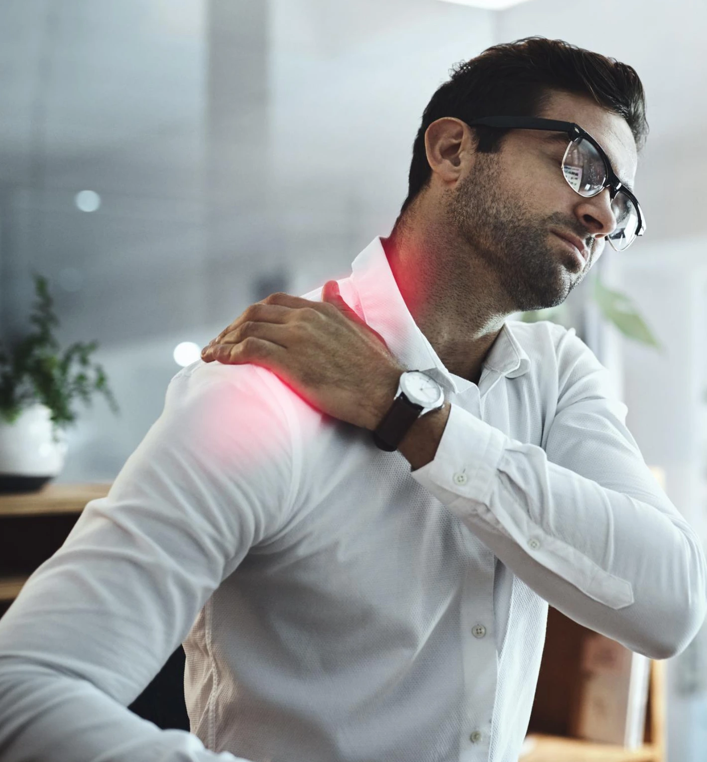 - Occupational strain, like long hours of computer or driving work